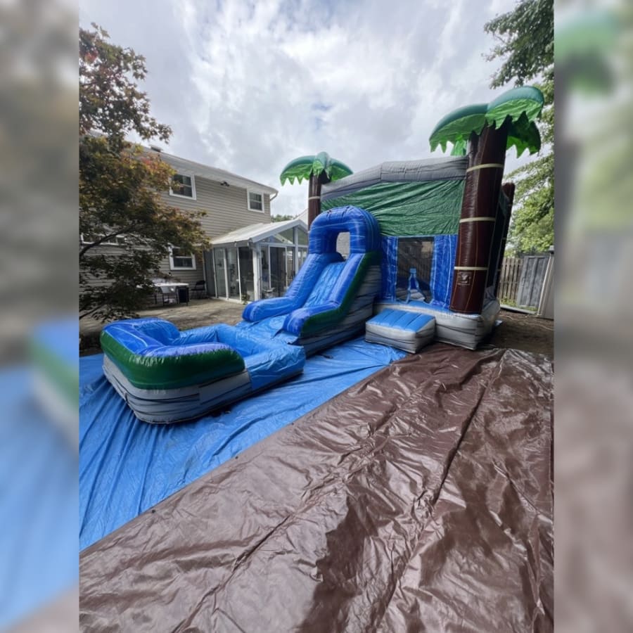 12' wide x 24' Long + 2' Front Step and 4' Air Hose - 13' High 24.6 × 13.1 × 11.5 Space Required - 15' wide x 28' Long - 16' high Make your event truly magical with our Palm Tree Combo. Contact us today to bring this inflatable castle to your party in Long Branch, NJ, Middletown, NJ, Rumson, NJ, Deal, NJ, Fair Haven, NJ, or any surrounding areas we serve. Let the laughter and joy begin! 🌟🎊