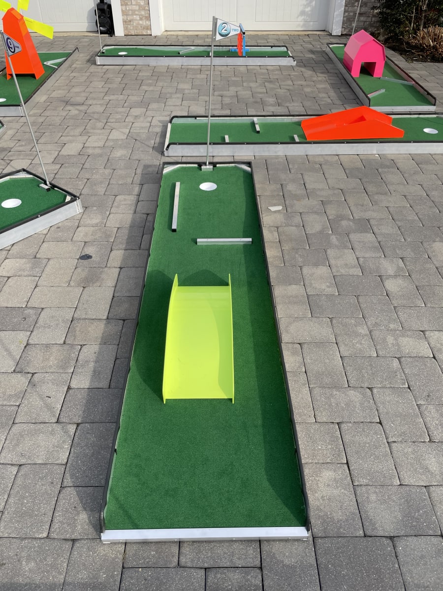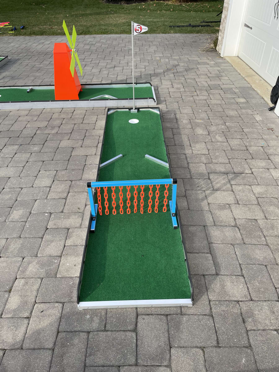 Challenge Accepted! With bridges, traps, and even a 360-degree loop, this mini golf course adds excitement and friendly competition to your gatherings. Watch as players strategize their way through each hole to achieve that elusive hole-in-one! ⛳🎉