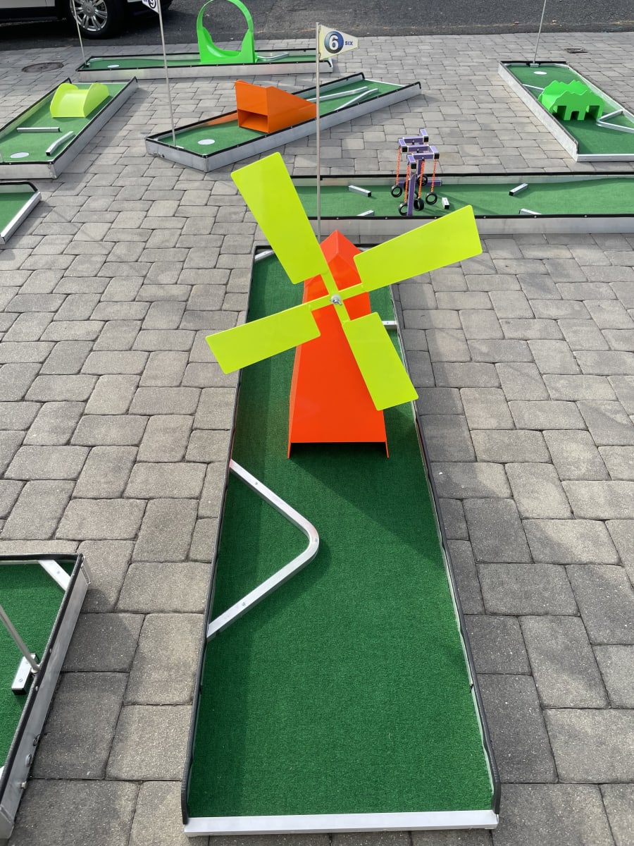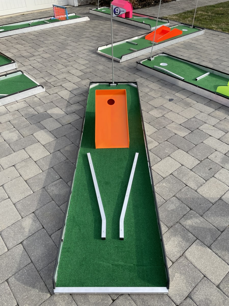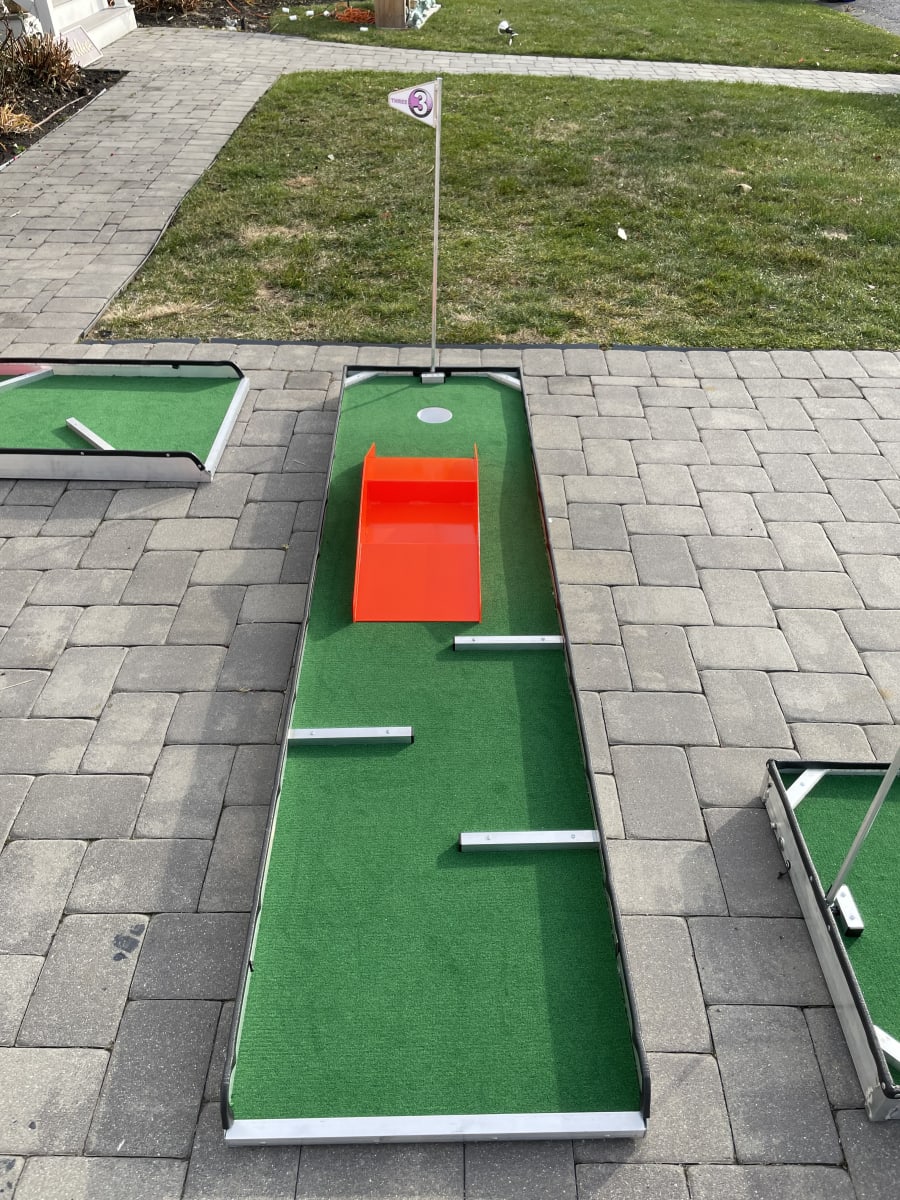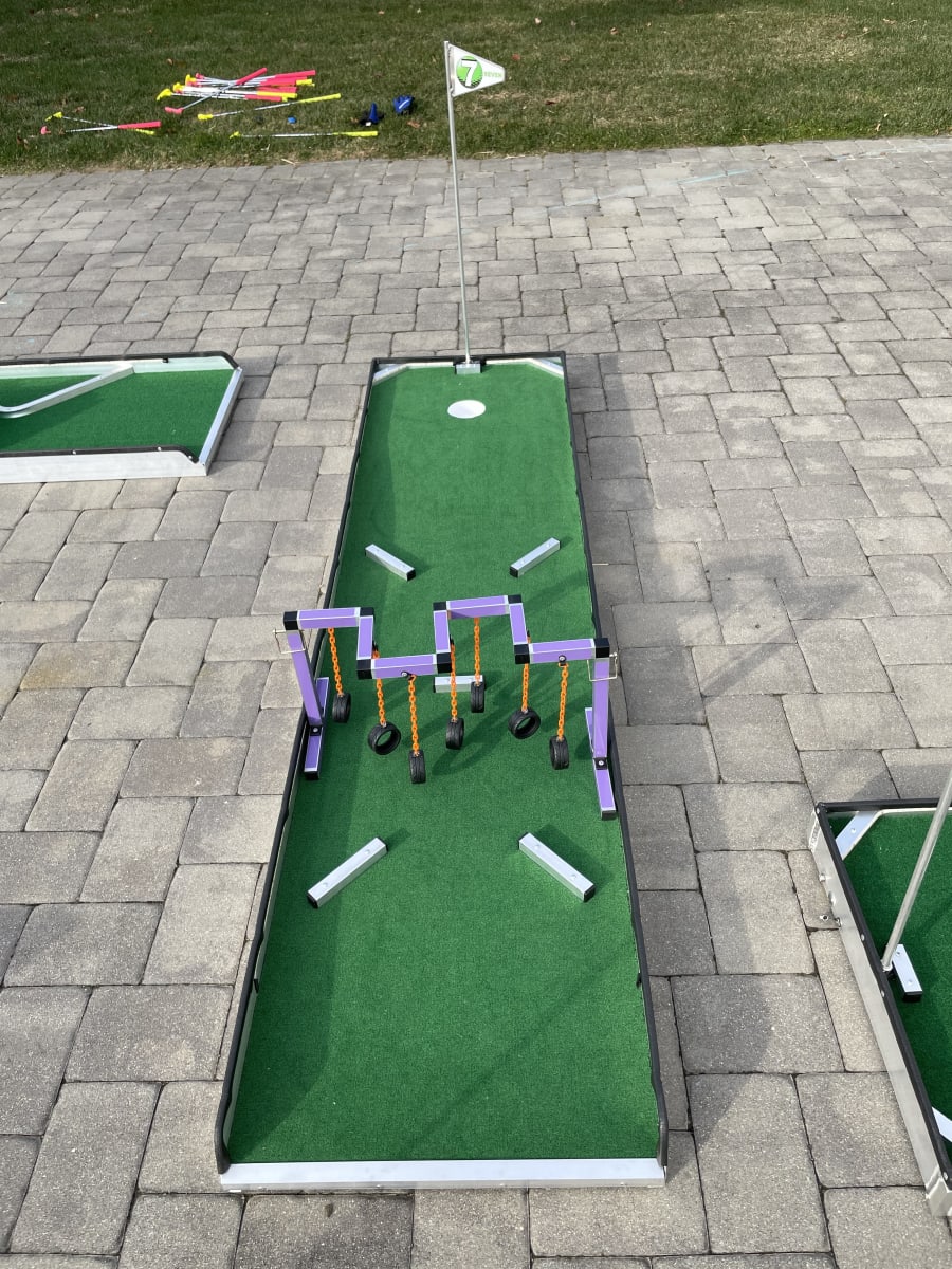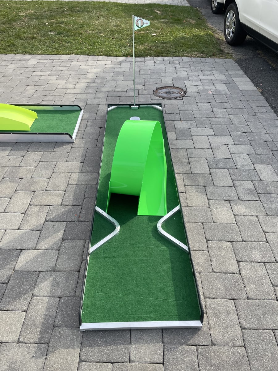 Challenge Accepted! With bridges, traps, and even a 360-degree loop, this mini golf course adds excitement and friendly competition to your gatherings. Watch as players strategize their way through each hole to achieve that elusive hole-in-one! ⛳🎉