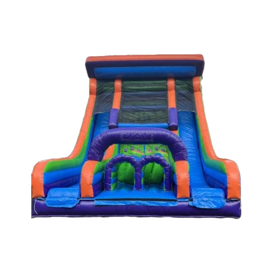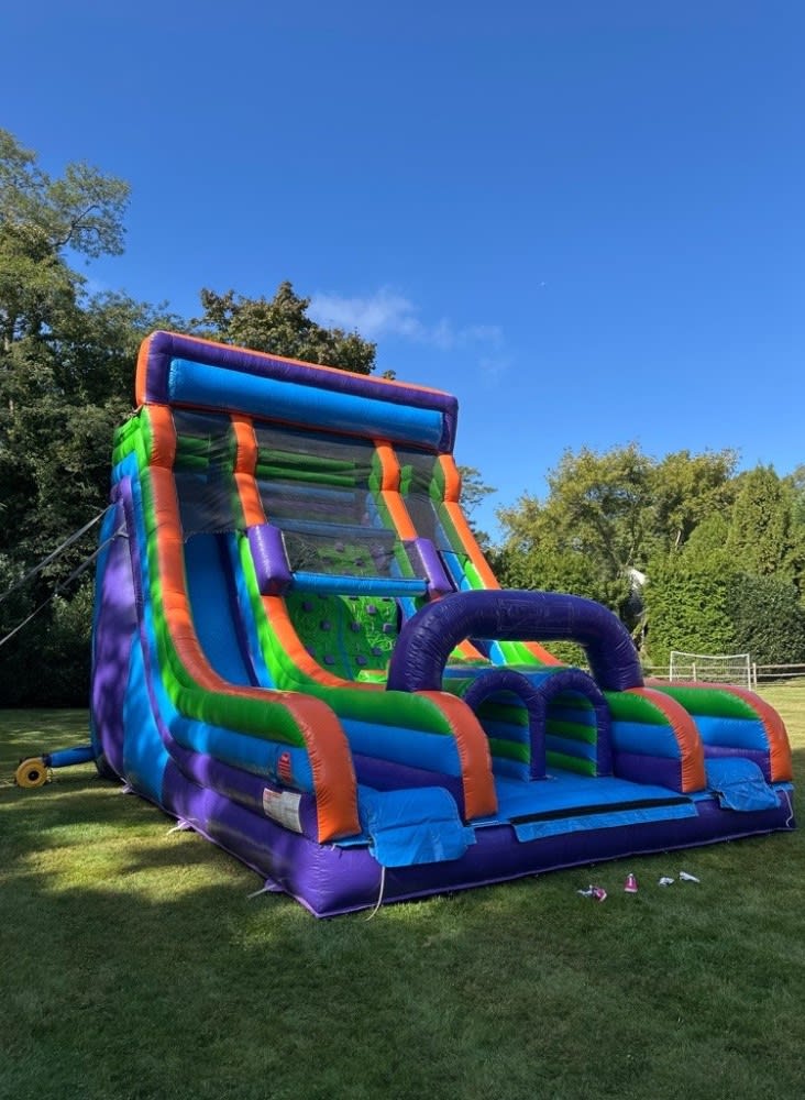 The name says it all! Vertical Rush, our giant dual-lane slide with obstacles, is set to be the highlight of any event. Suitable for kids, teens, and adults alike, this inflatable attraction stands over 22 feet tall and offers a unique challenge with its exhilarating rock climbing wall.