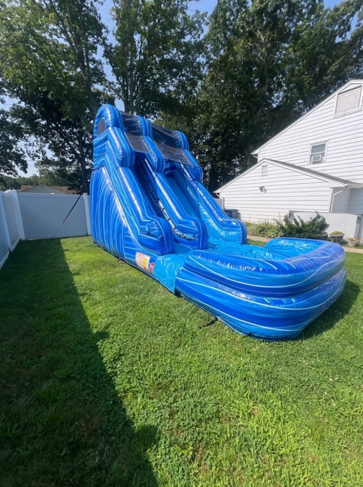 Make your event truly magical with our 14' Blue Marble Slide. Contact us today to bring this inflatable to your party in Long Branch, NJ, Middletown, NJ, Rumson, NJ, Deal, NJ, Fair Haven, NJ, or any surrounding areas we serve. Let the laughter and joy begin! 🌟🎊