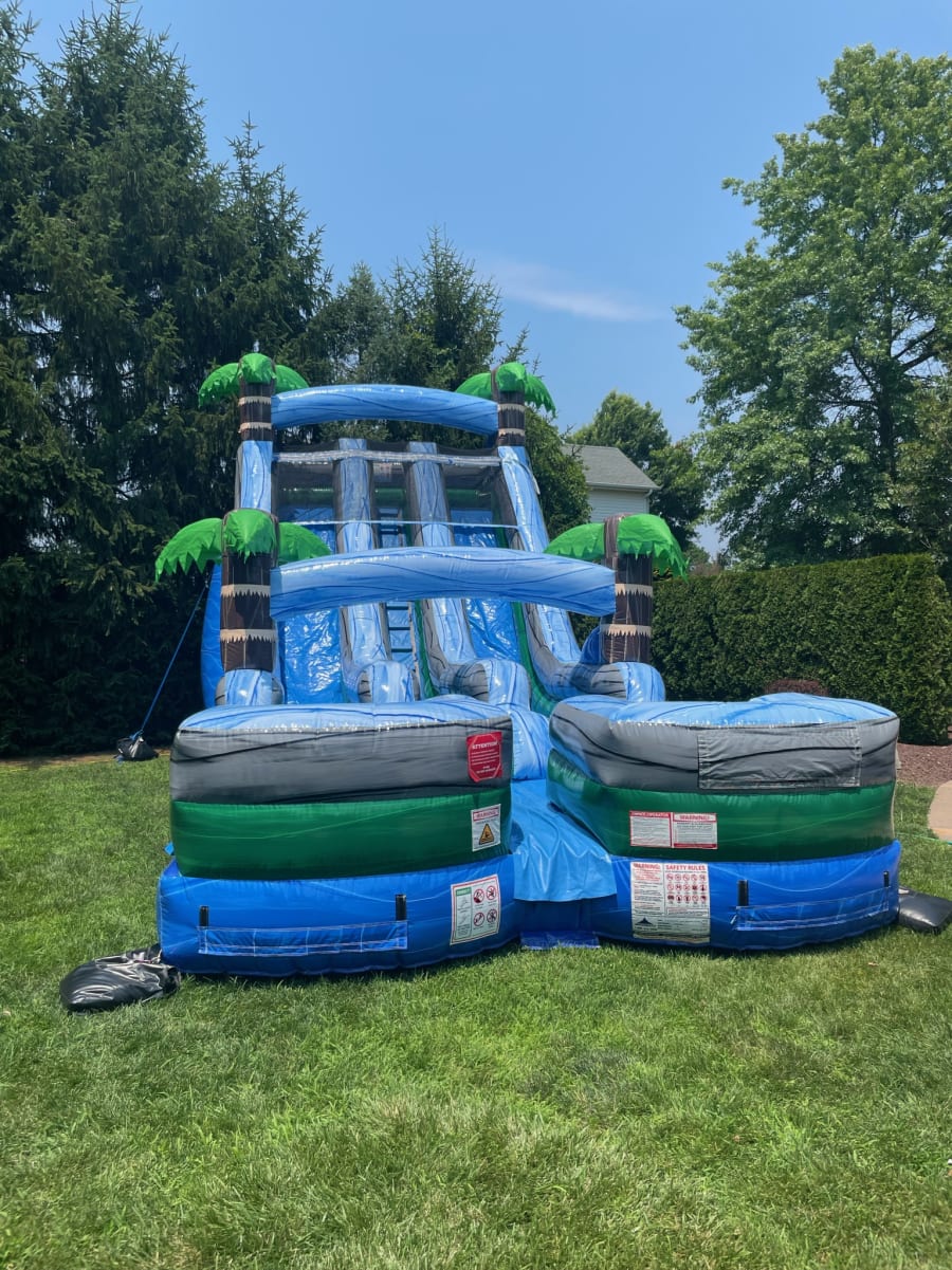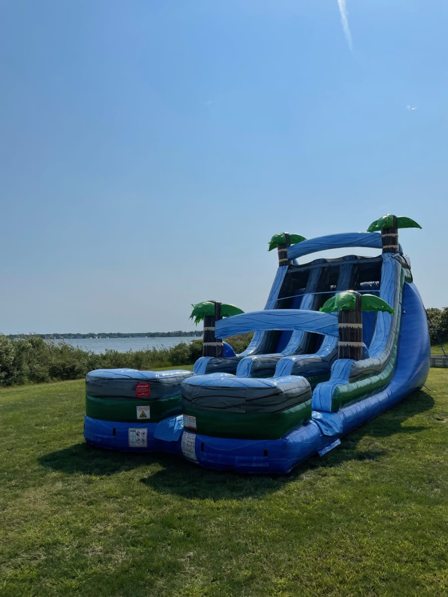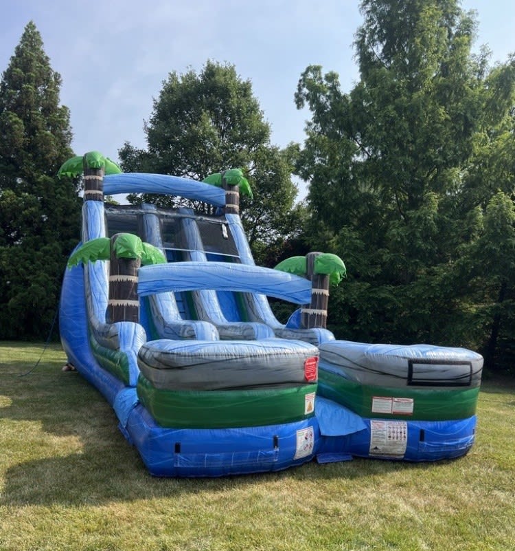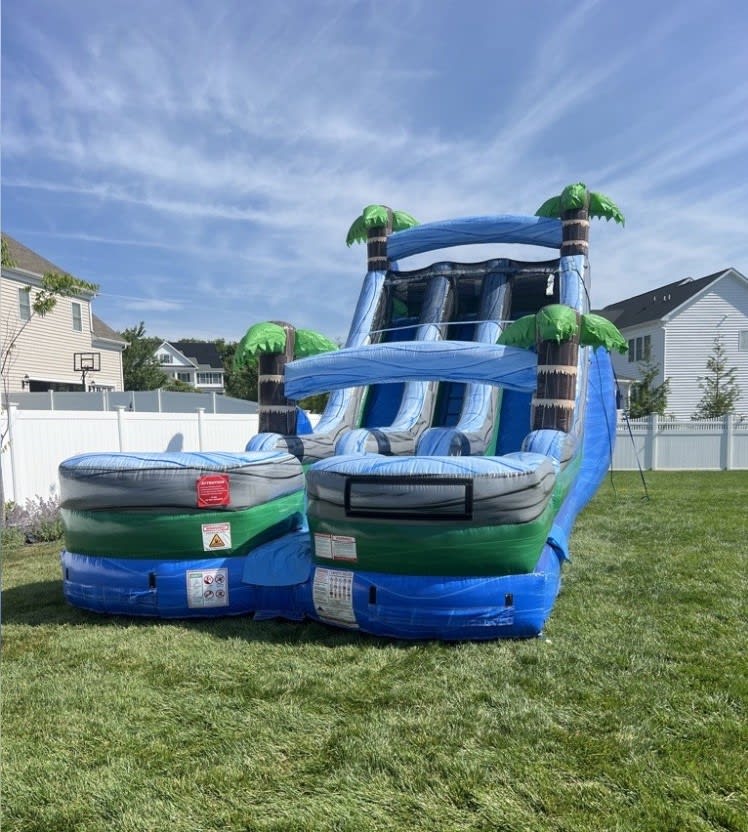 Make your event truly magical with our 18' Tropical Dual Slide. Contact us today to bring this inflatable to your party in Long Branch, NJ, Middletown, NJ, Rumson, NJ, Deal, NJ, Fair Haven, NJ, or any surrounding areas we serve. Let the laughter and joy begin! 🌟🎊
